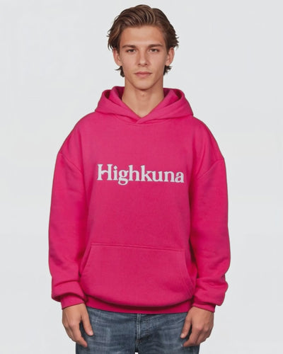 Dieser pinke oversized Hoodie hat einen riesigen Front Stick auf der Brust.